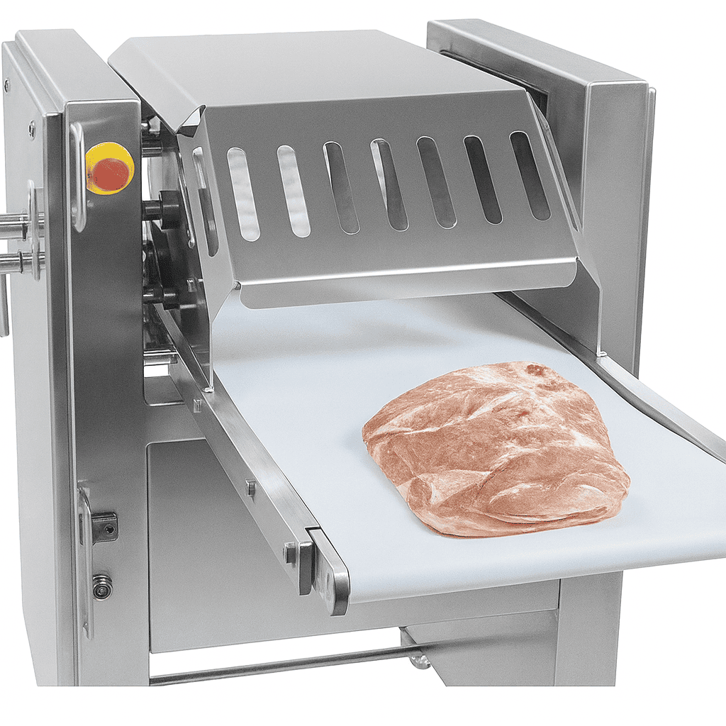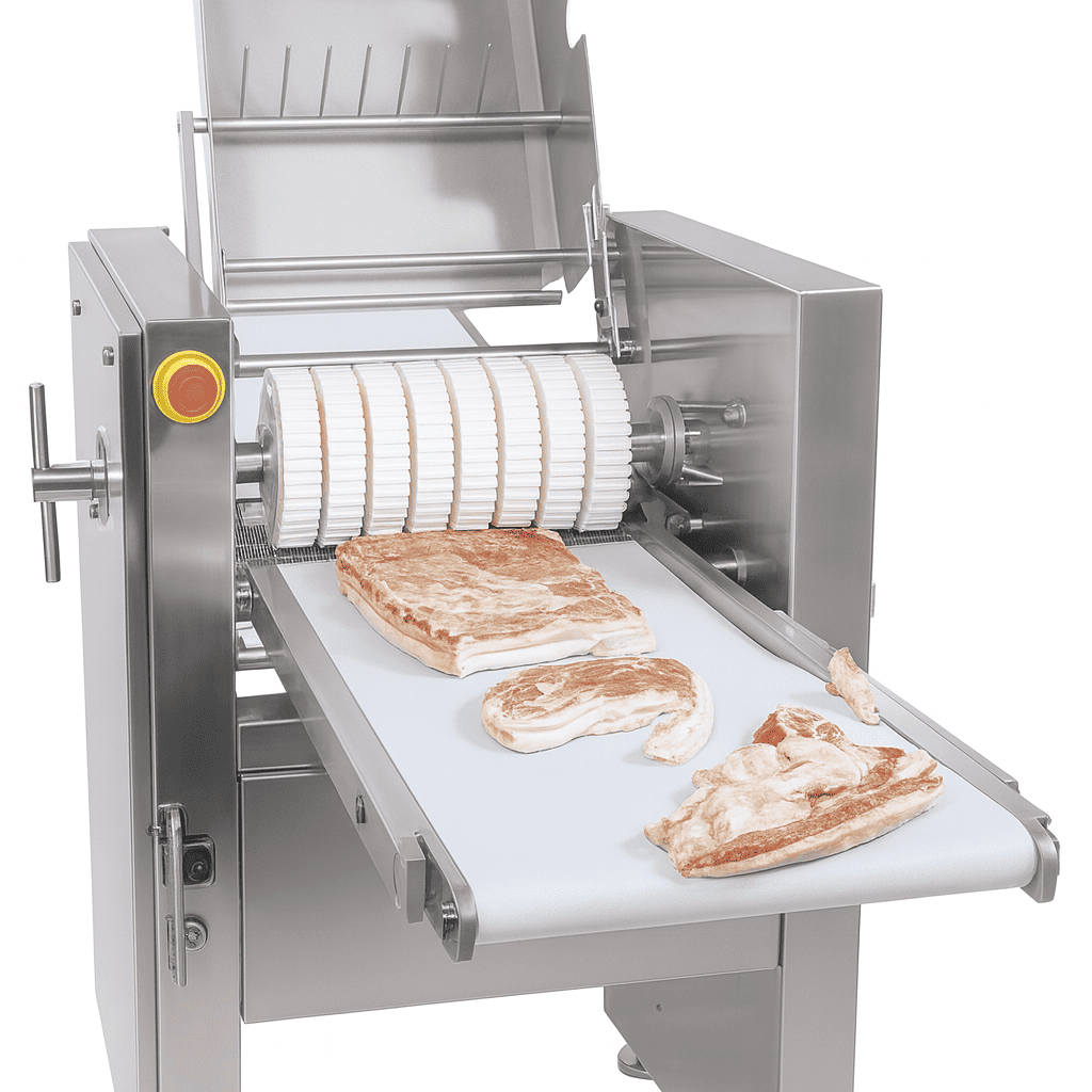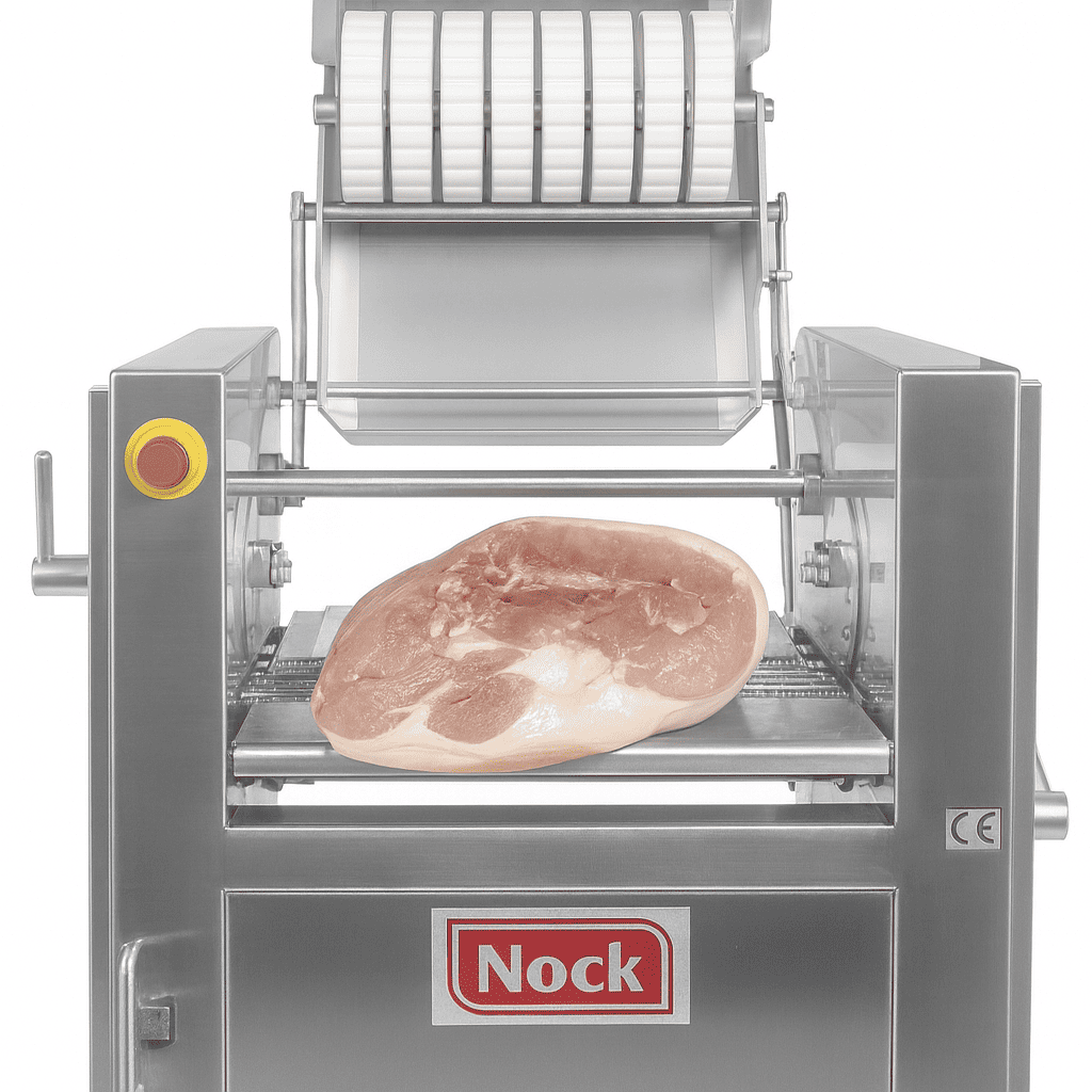 Las descortezadoras NOCK son máquinas diseñadas para descortezar todo tipo de piezas como vientre, tocino, lomos, cortezas, entre otros. Fabricadas con precisión y calidad alemana, estas descortezadoras son ideales para plantas industriales donde se requiere un rendimiento y funcionamiento óptimos para satisfacer las demandas del proceso de producción en industrias de procesado de carne.