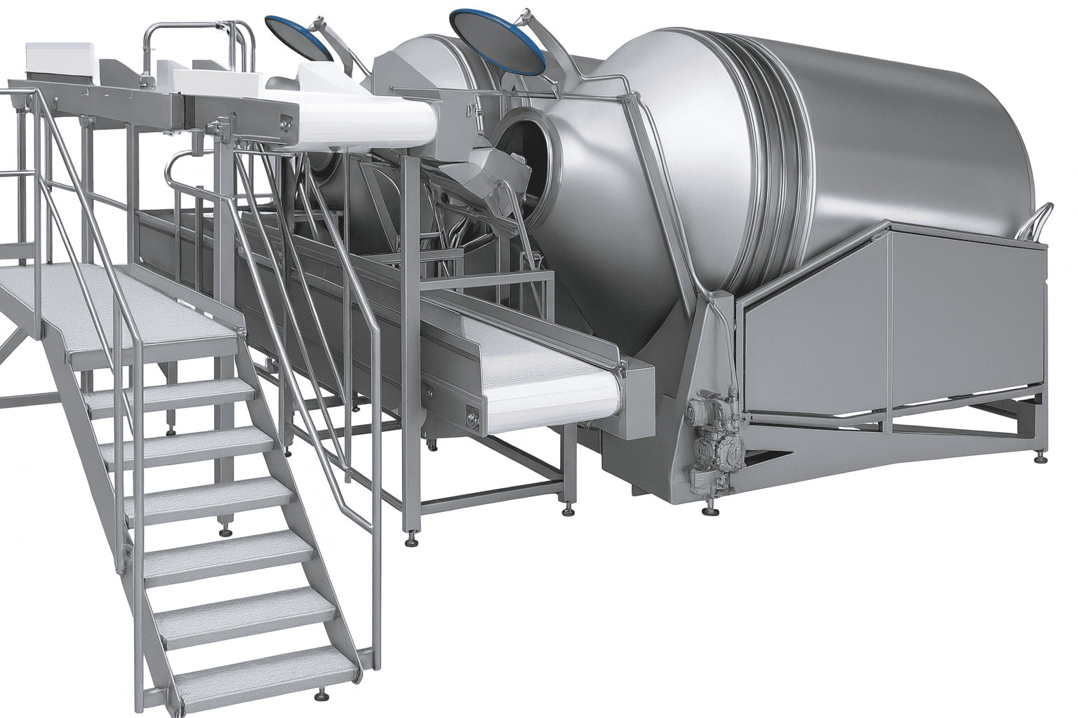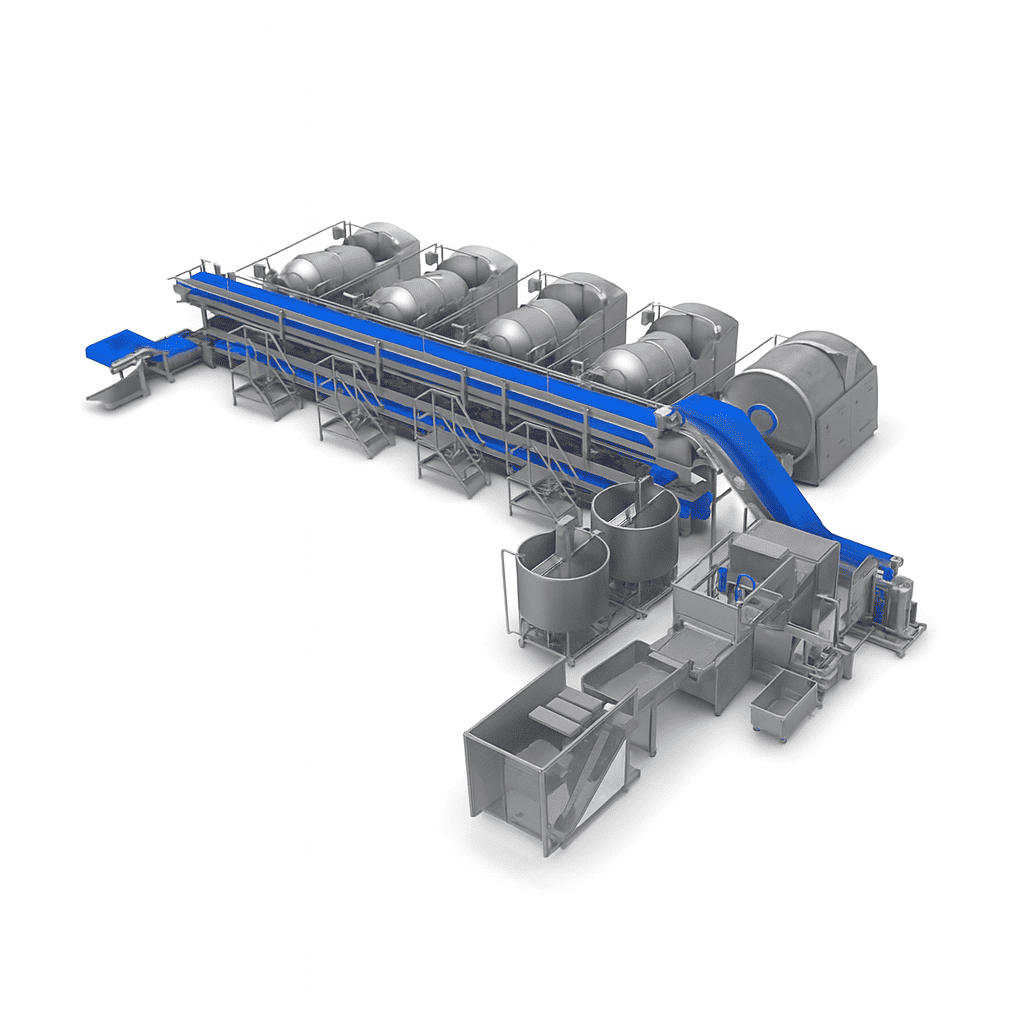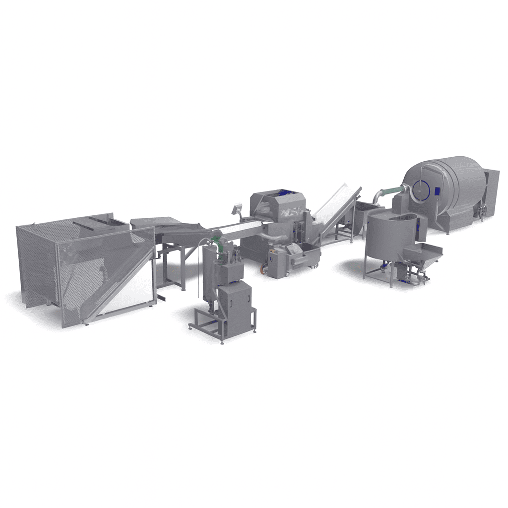 Anadir a la inyectora sistema SAS el dispositivo de carga de la carne, el filtro rotativo y la mezcladora de salmuera significa formar un sistema muy eficiente y una línea automática de inyección.